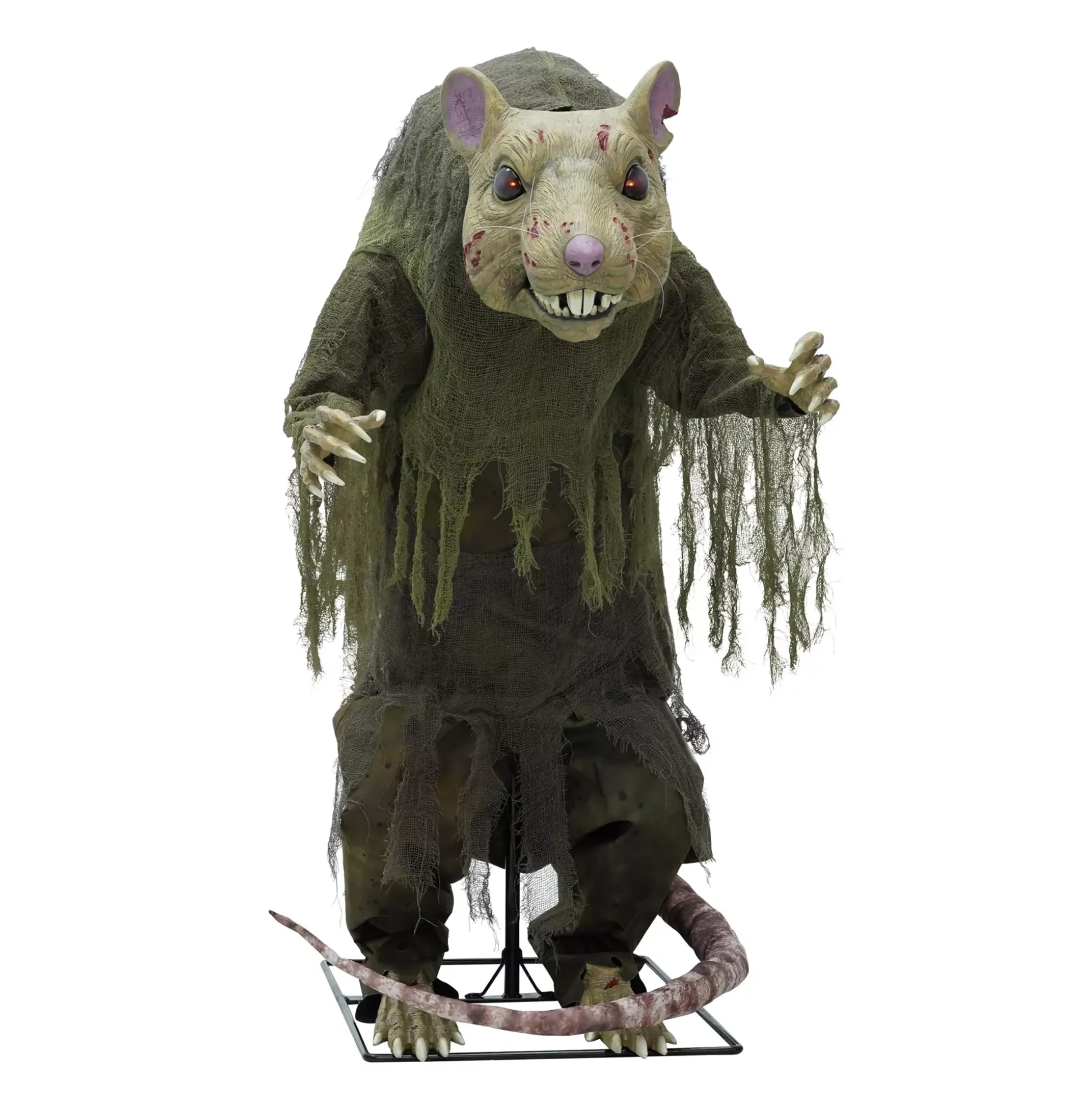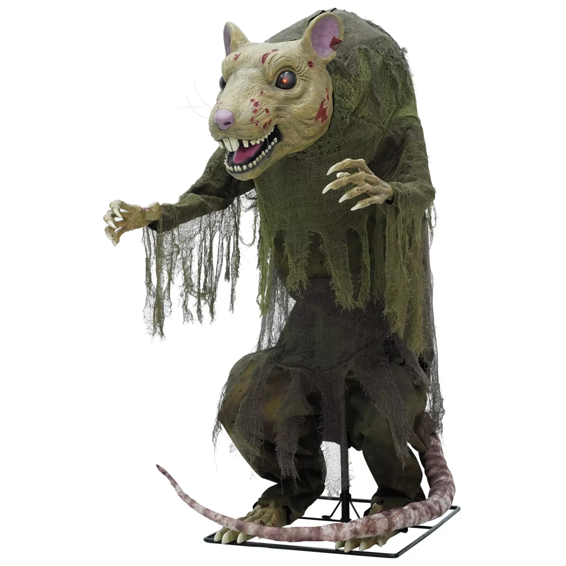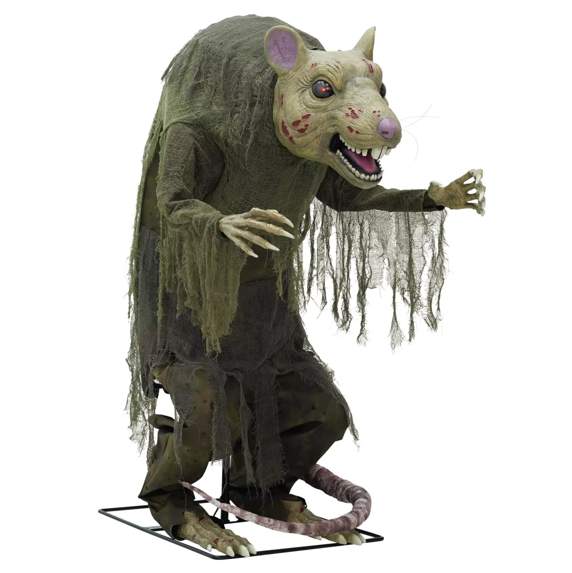 This Mutant Sewer Rat Animatronic will make your guests squeak with fear! Standing 4 feet 2 inches tall, this rabid rodent makes menacing hissing and squeaking noises as he prepares to gnaw through your flesh and bone! Watch in horror as his head moves side to side, and his mouth opens as he gets ready for his next meal. His terrifying light-up yellow LED eyes are the last thing you’ll see before he begins his feast!