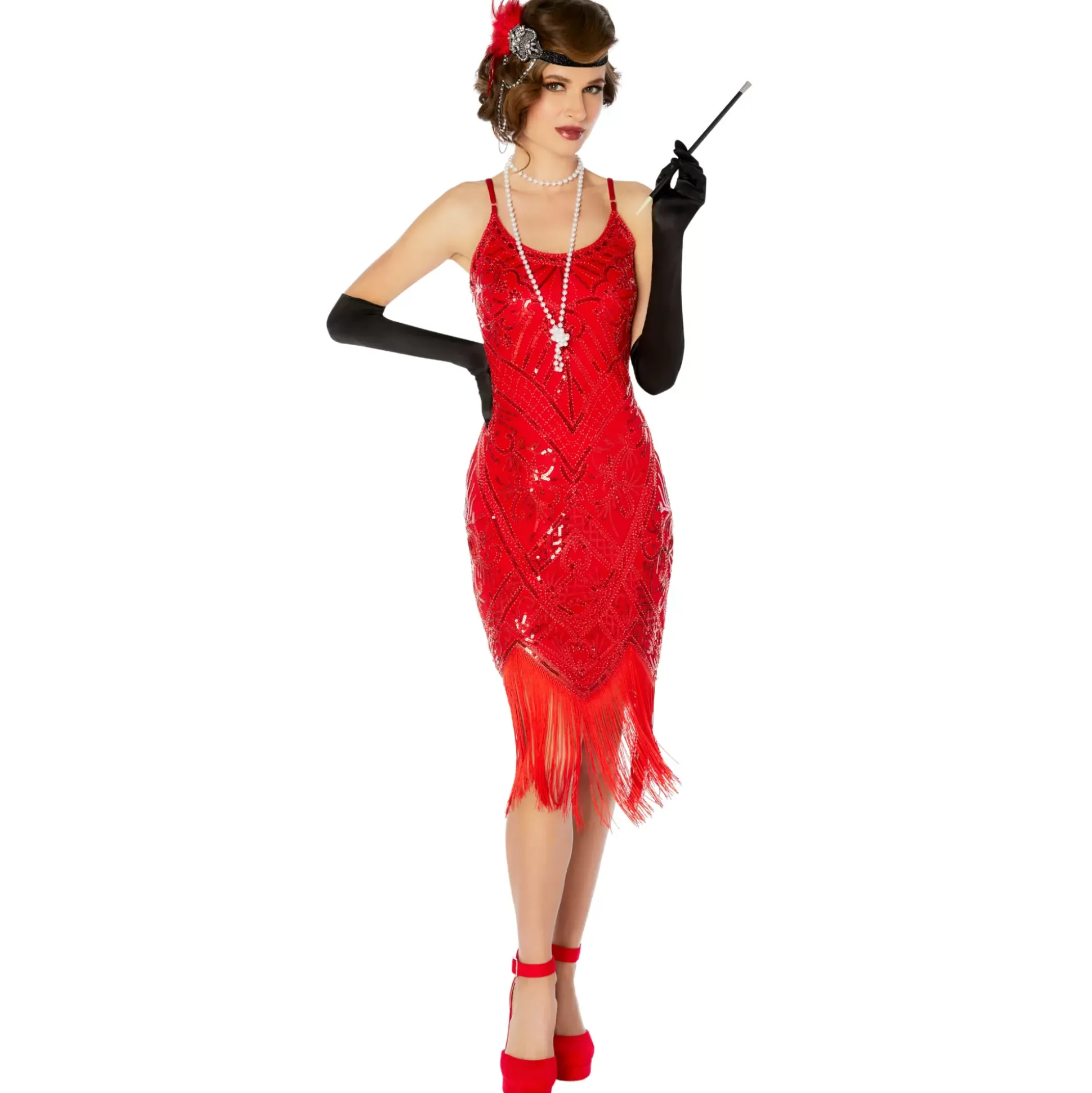 Start your classic costume off with this vintage Adult Red Sequin Flapper Dress. This dress features an eye-catching red sequin design that will have you looking like you’re straight out of the 1920’s!