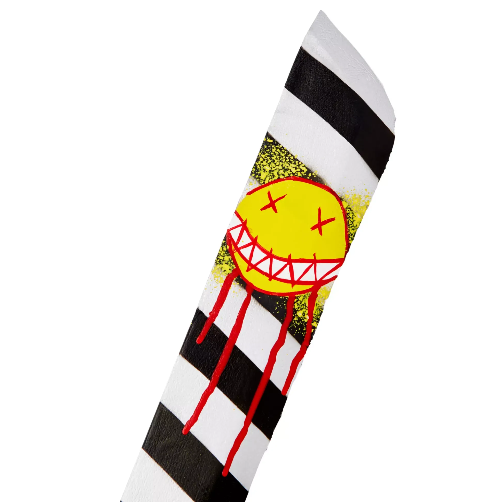 Bring menacing laughter and fear with you wherever you go while you’re carrying this foam clown machete. This machete features a red and black striped handle while the blade of the machete is striped black and white. The machete also has a bleeding smiley face on the edge of the blade, an ironic last image for anyone who’s on the chopping block.