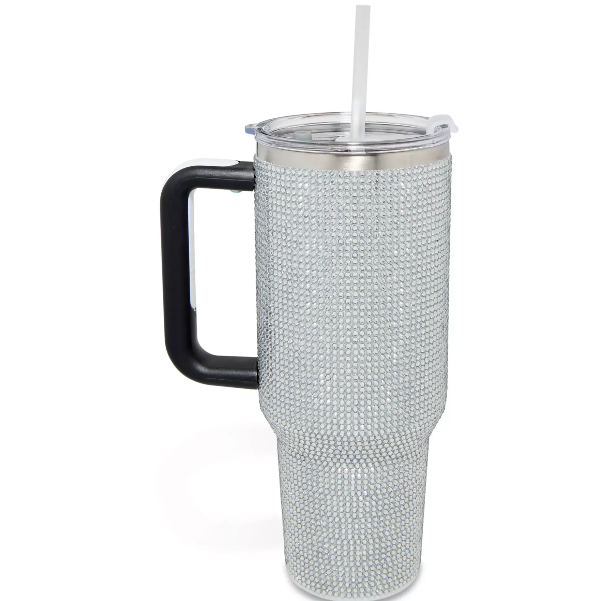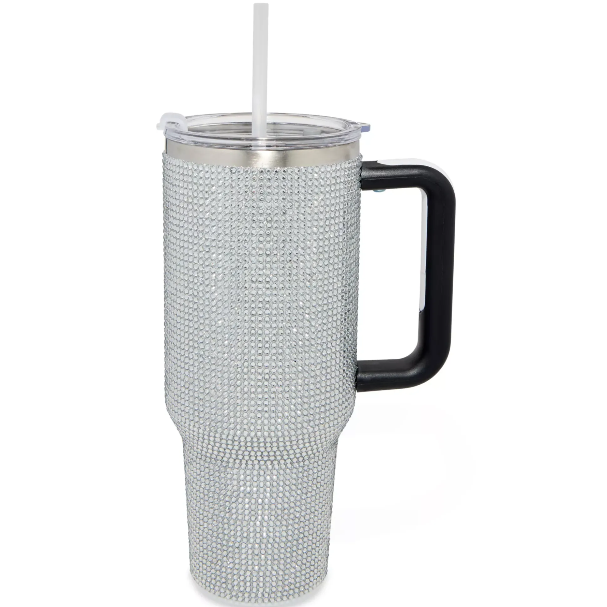 Bring a smile to your face every time you drink from this sparkly silver rhinestone tumbler with straw! This convenient tumbler is the perfect stylish way to stay hydrated at home or on-the-go.