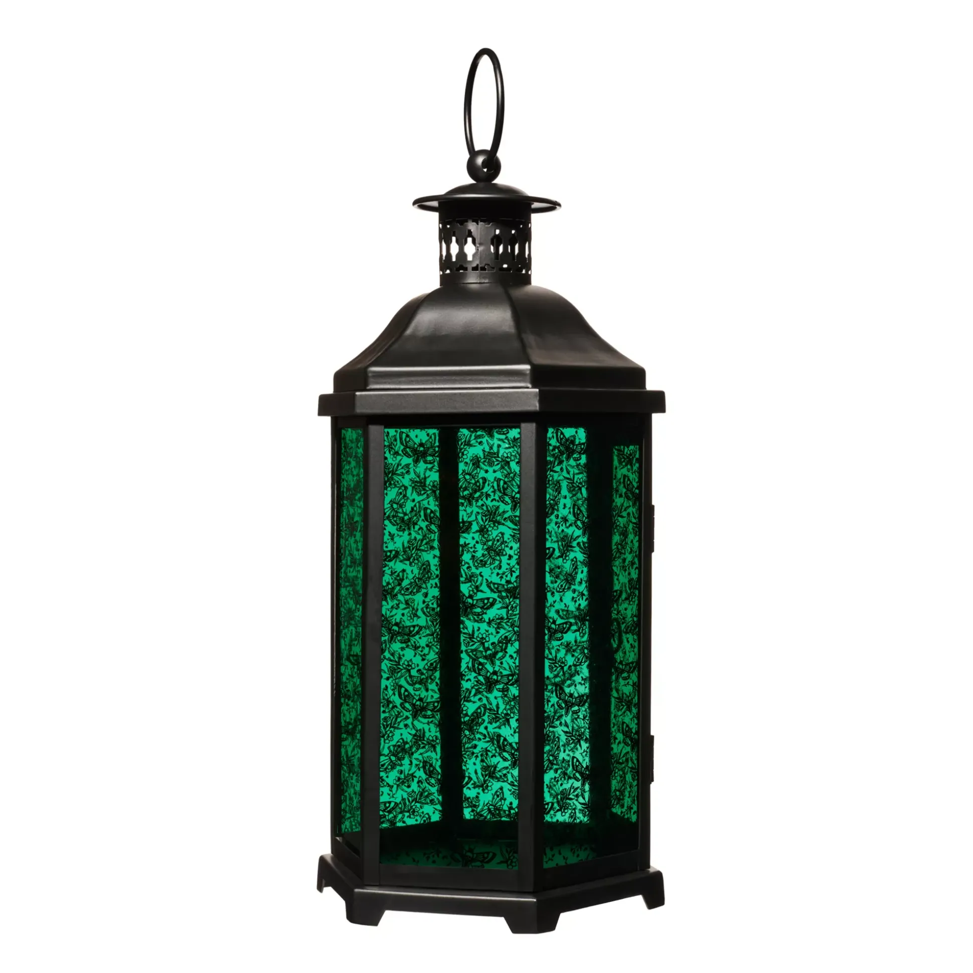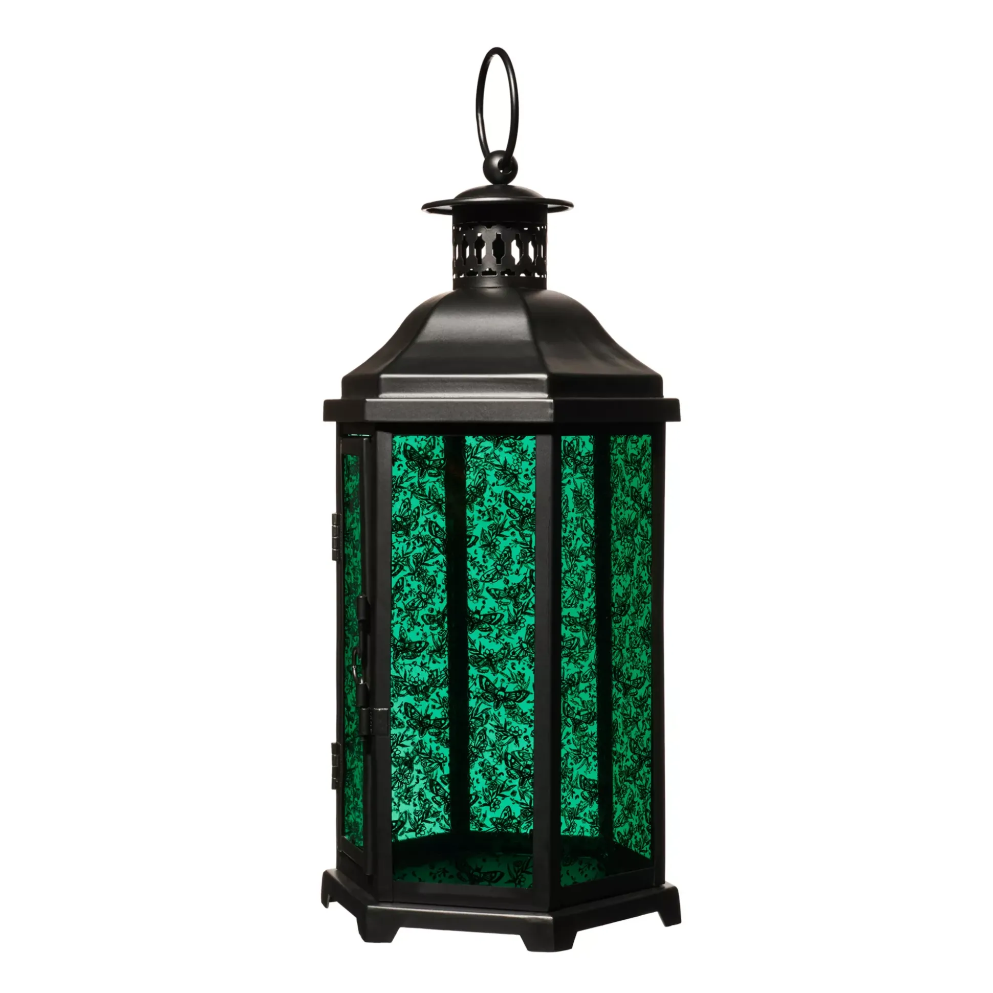 Gather your coven and decorate with this enchanting Teal Glass Moth Lantern! Featuring a stunning teal design adorned with death moths, this witchy lantern is the perfect addition to your Halloween decor.