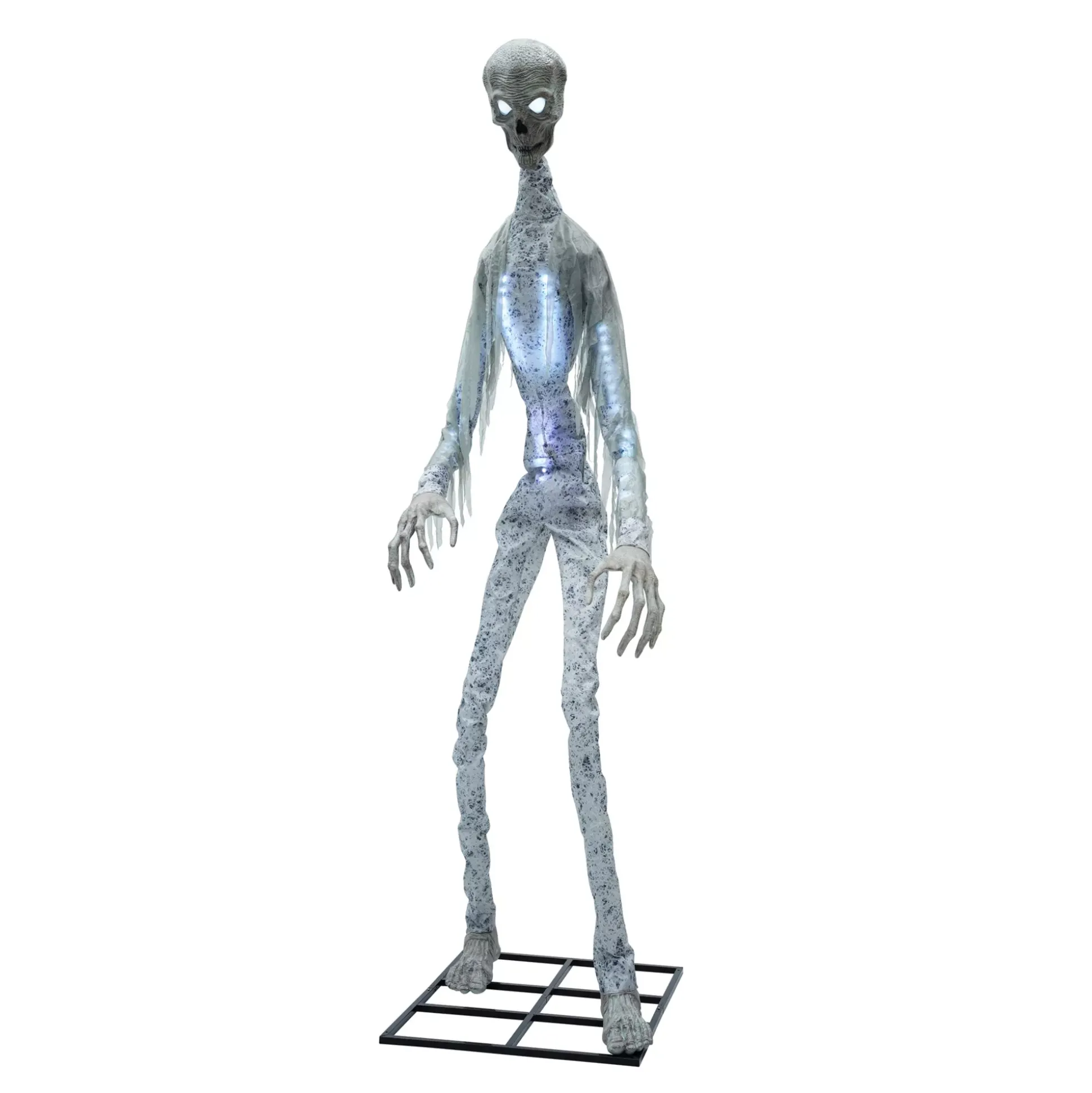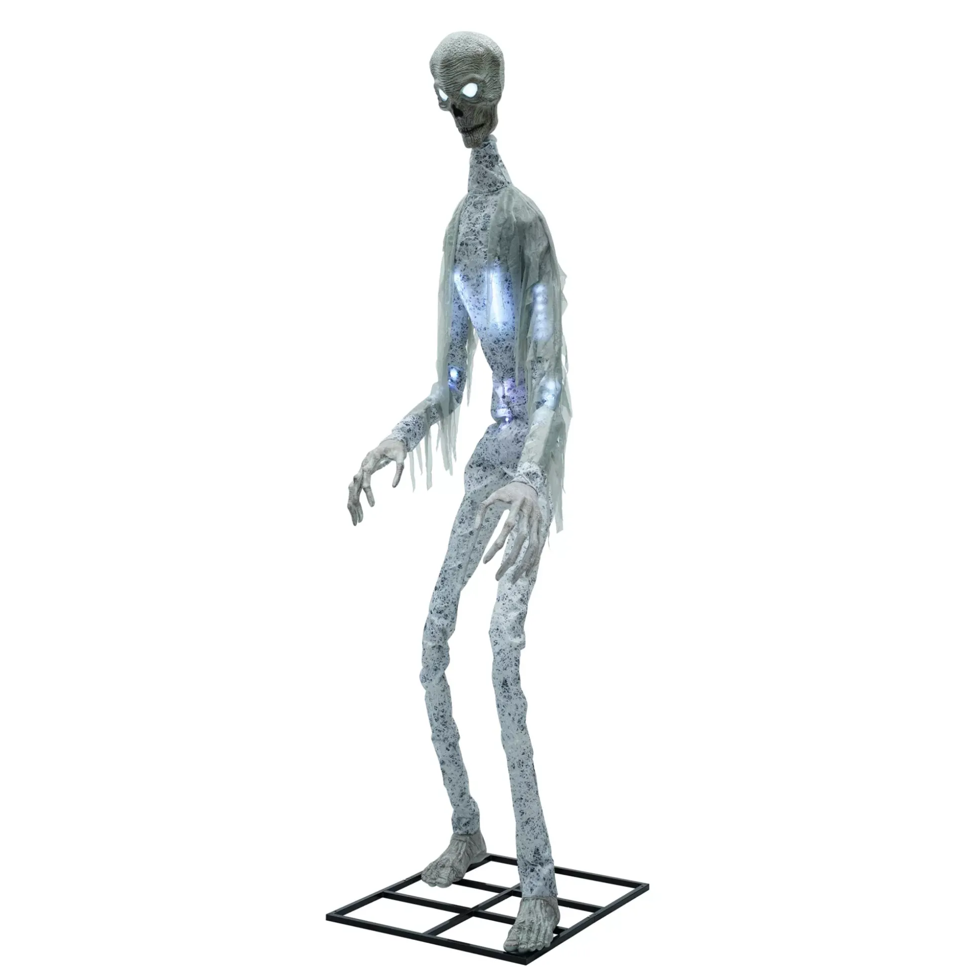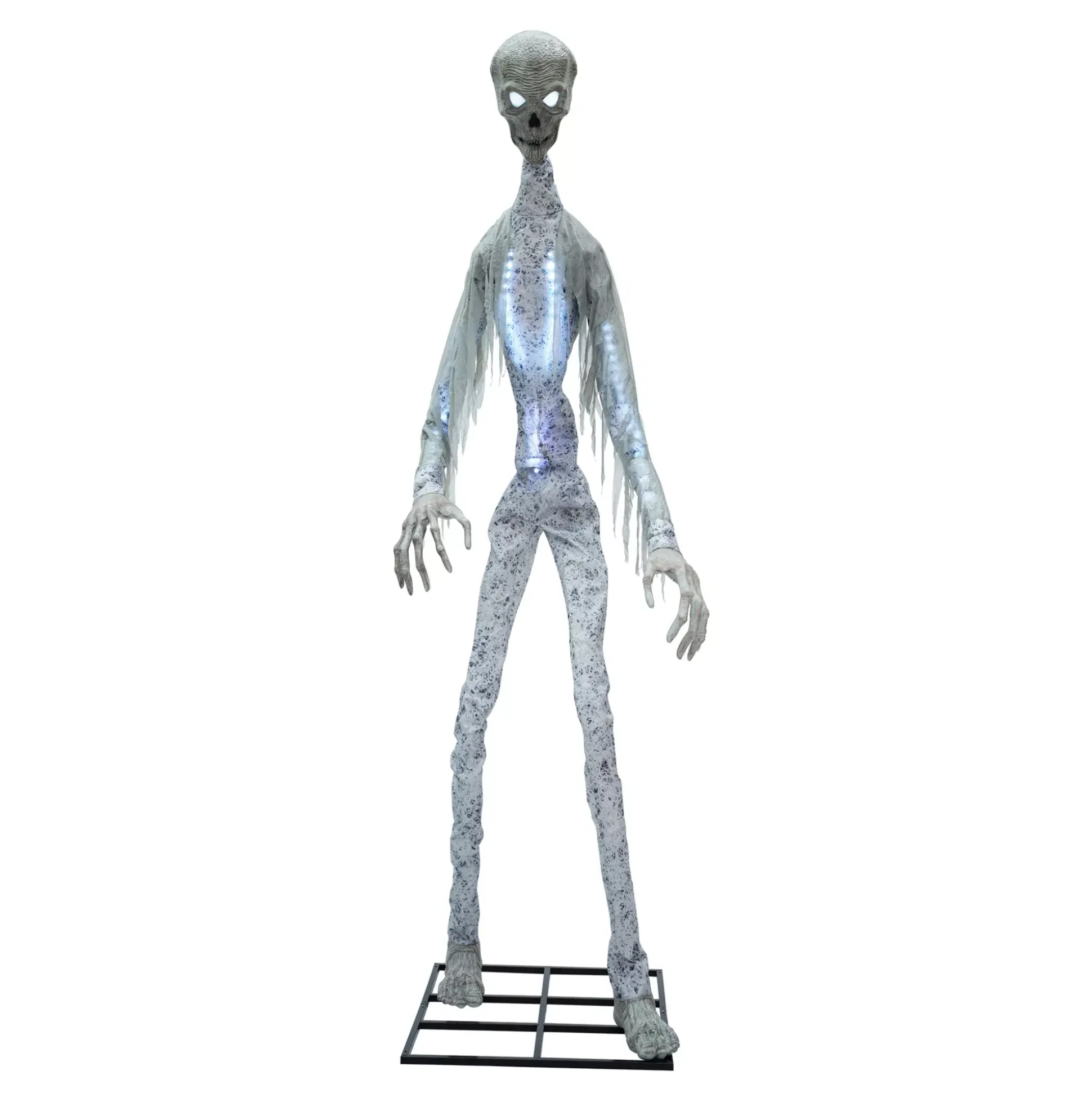 Brace for an invasion of your home this Halloween once Giant Death Ray lands his UFO in your yard. This dynamic animatronic stands at 10 feet tall and features servo motion technology inside its light-up head for realistic side-to-side movement. Once activated, white LED lights illuminate the torso and move their way up to the arms. You’ll know Ray is coming when you hear his unsettling galactic noises!
