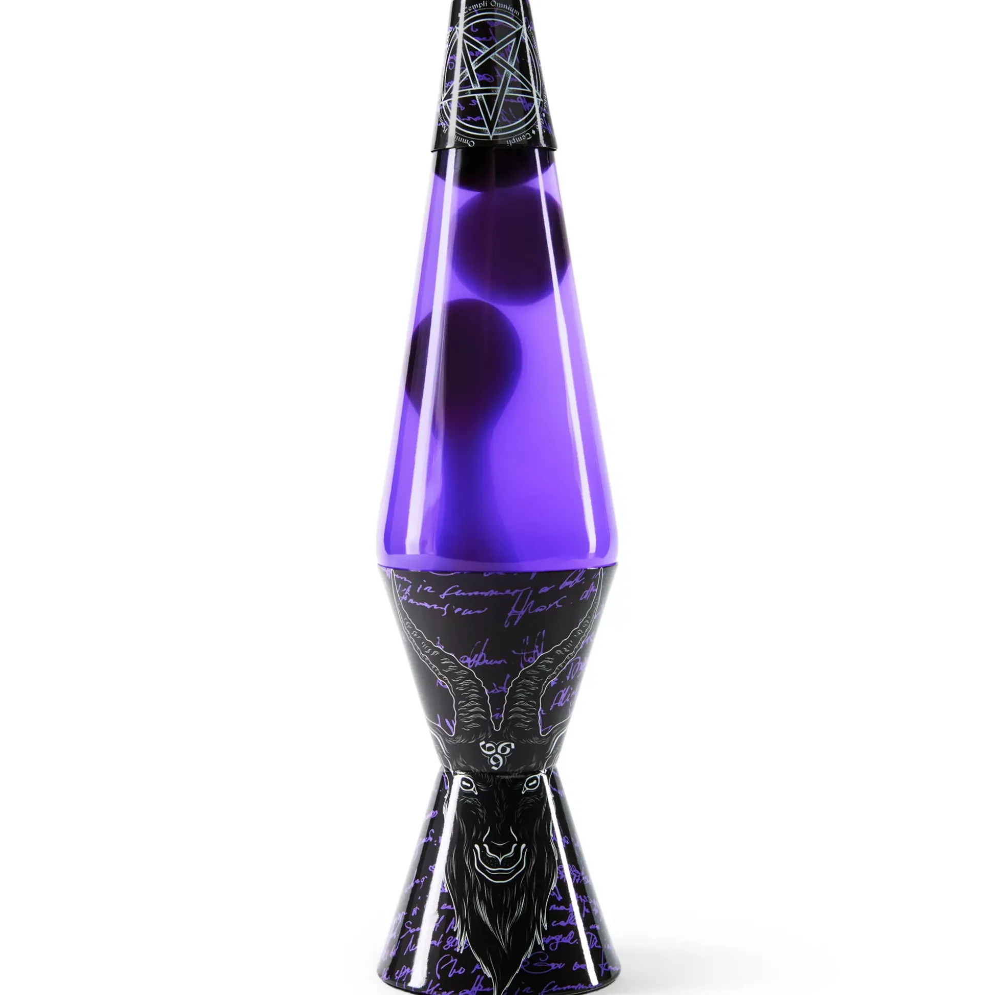Embrace your dark side and add some glow to your space when you get this Baphomet Pentagram Lava Lamp. This groovy lamp is 14.5 inches tall and features an stylish design that’ll elevate the look of your room. Watch as the black wax flows through the purple liquid, creating a mellow and peaceful atmosphere in your home.