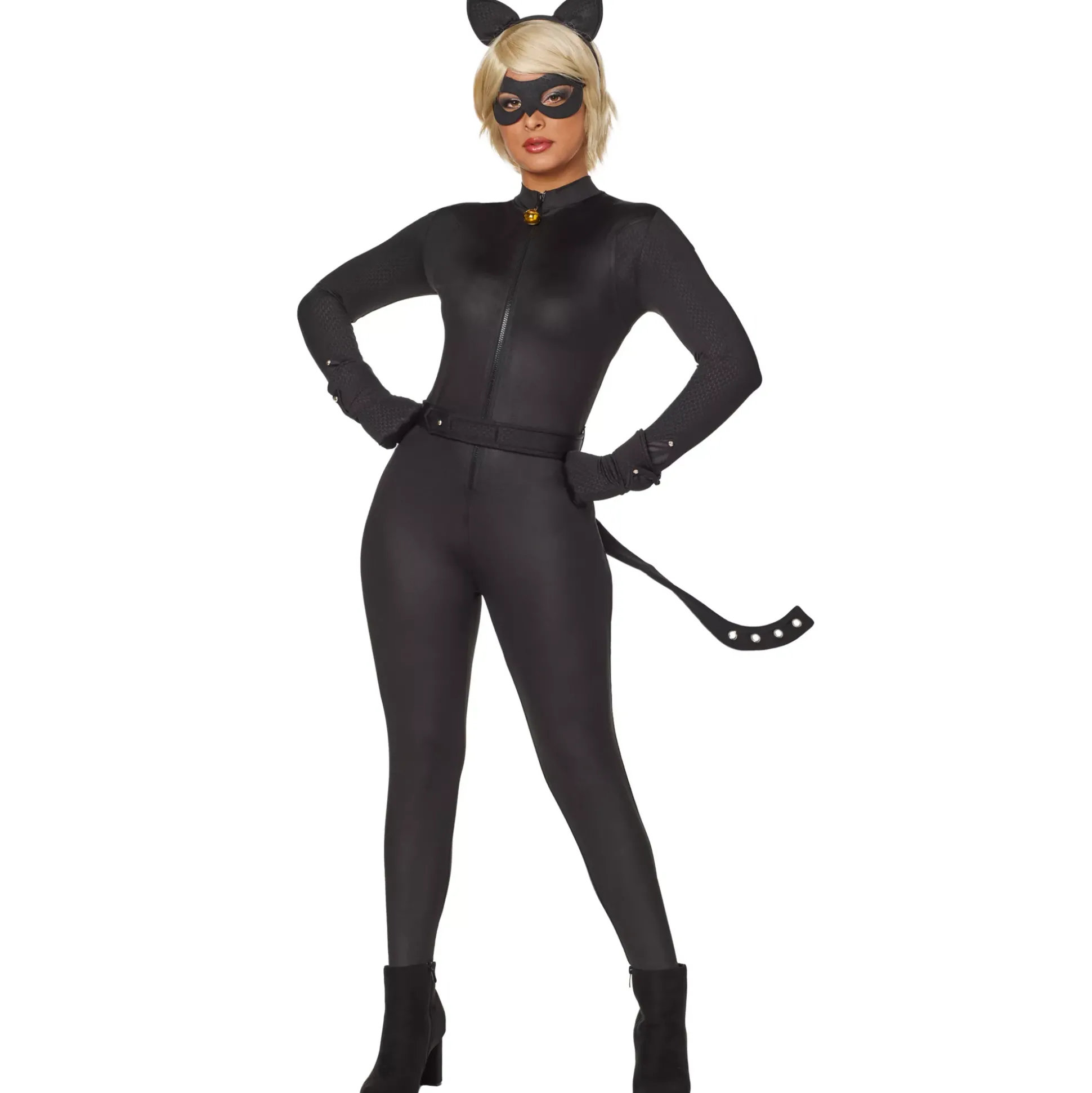 You’ll be the most popular black cat on the block in this officially licensed Cat Noir costume! This adult Cat Noir costume includes an all-black jumpsuit with generous stretch and a front zipper closure. A cat ear headband, a black belt, and a matching eye mask will instantly transform you into the Miraculous superhero! Complete the authentic look with black gloves and a thirst for adventure!