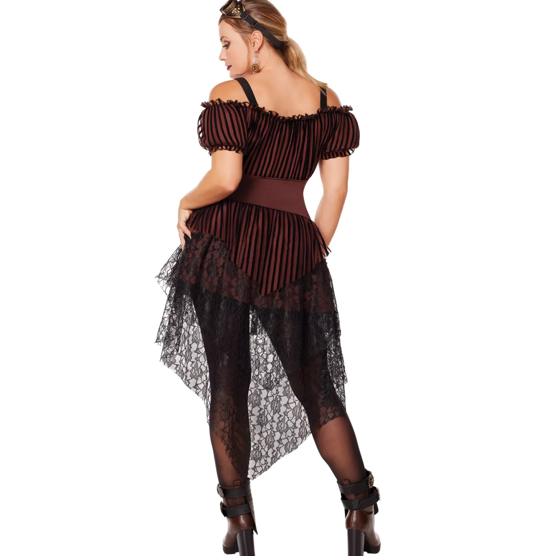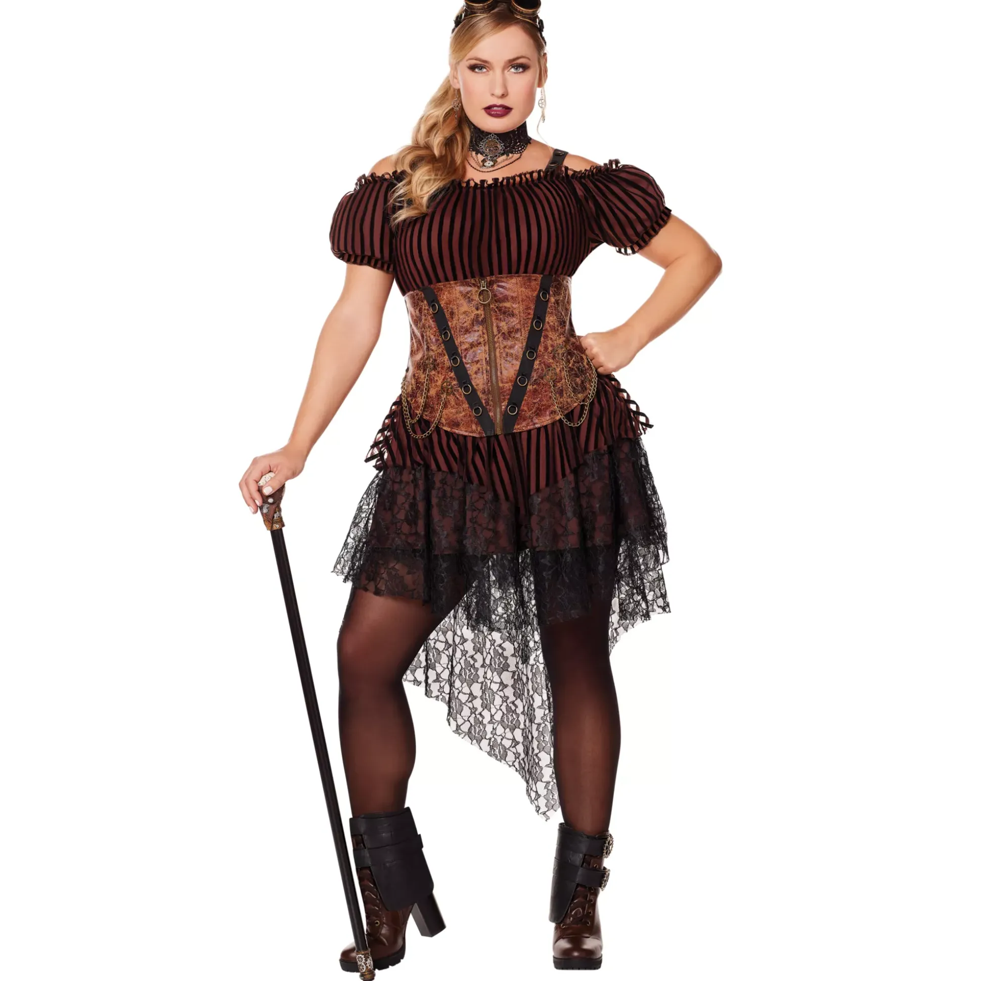 Become the Queen of Steampunk this Halloween when you rock this incredibly stylish plus size costume! Featuring a dress, goggles, a choker, and a waist cinch, this costume includes everything you need to nail the look.