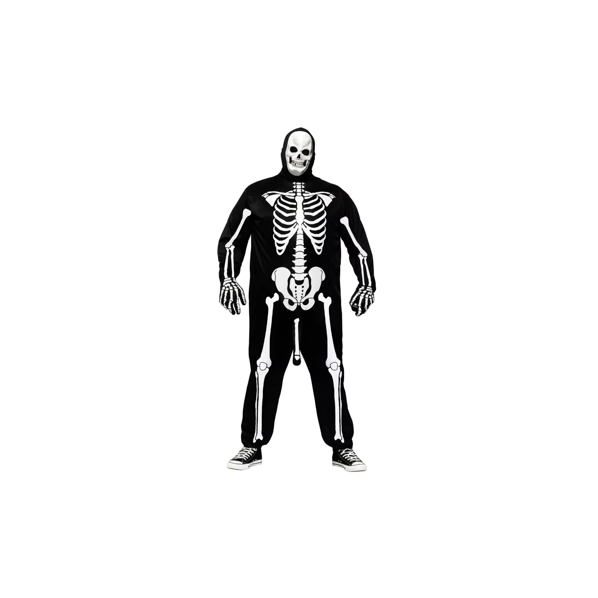 Give someone a big surprise when you wear the Skeleboner Adult Plus Size Costume. This hilarious jumpsuit comes complete with a skeleton mask and a pop-up phallus activated by a hand pump.