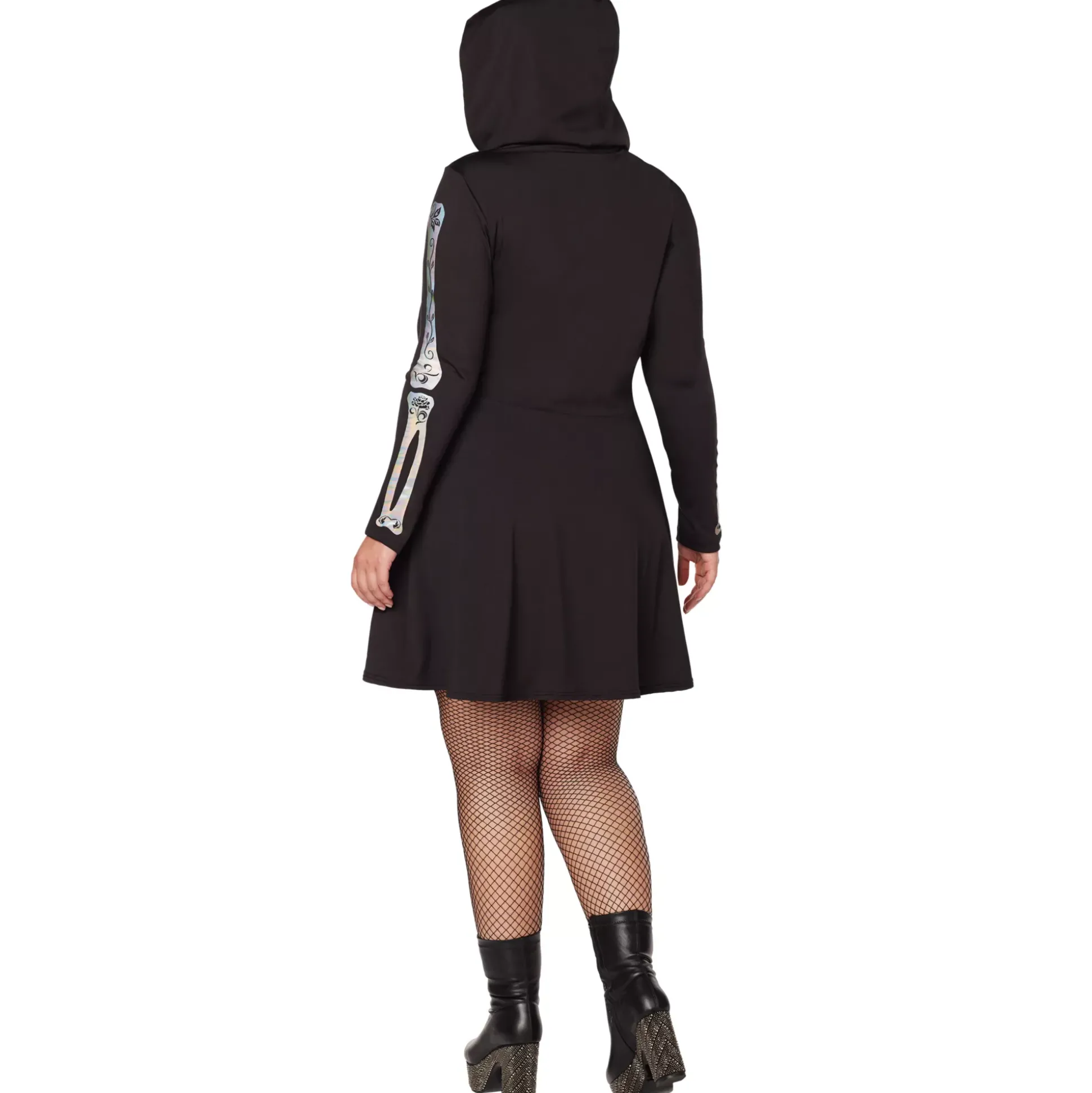 Have you ever seen such an adorable skeleton? This Adult Skeleton Hooded Plus Size Dress features long sleeves, a fit and flare design, and a bone-chilling skeletal print for a look that’s both stylish and spooky. This skeleton dress is perfect for when you want to look good and feel bad to the bone!