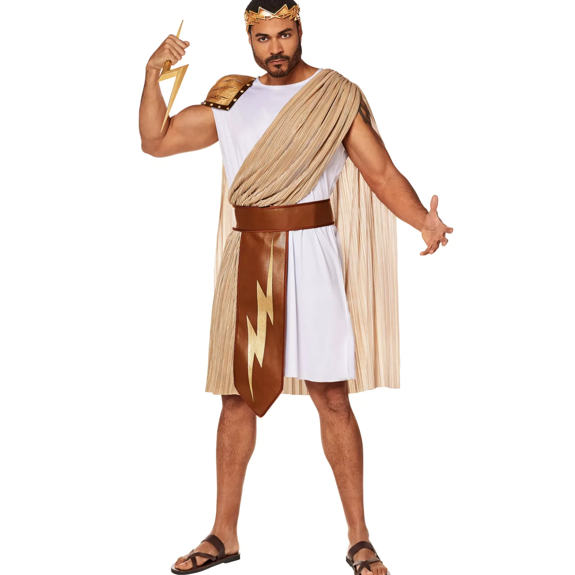 Transform into the God of sky and thunder when you wear this epic Zeus costume. Featuring a stunning tunic with an attached cape, a beautiful crown, and a belt, this costume is perfect for you. Bring along the included lightning bolt prop and become a part of history!