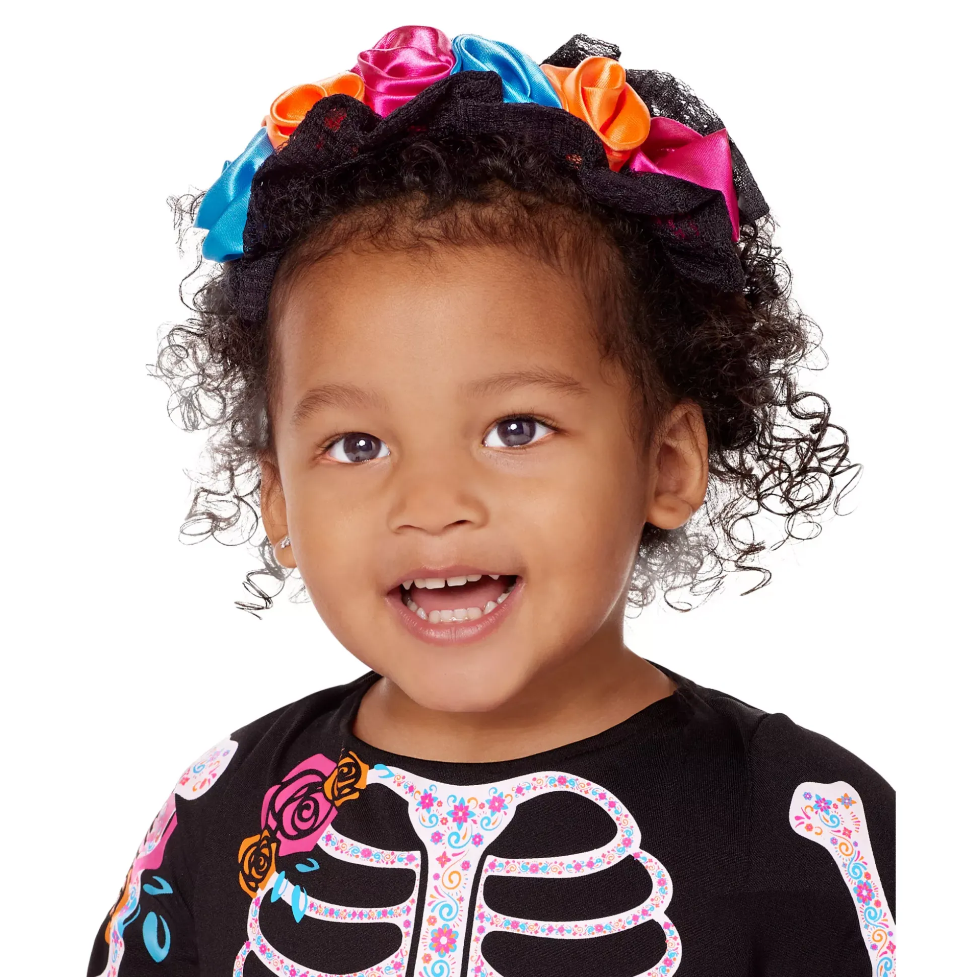 Your little one will be the sweetest skeleton in town with this costume! With flower-printed bone graphics, a shimmering, multi-layer skirt, skeleton tights, and a matching pink, orange, and blue headpiece, your sweetie will earn skele-TONS of compliments!
