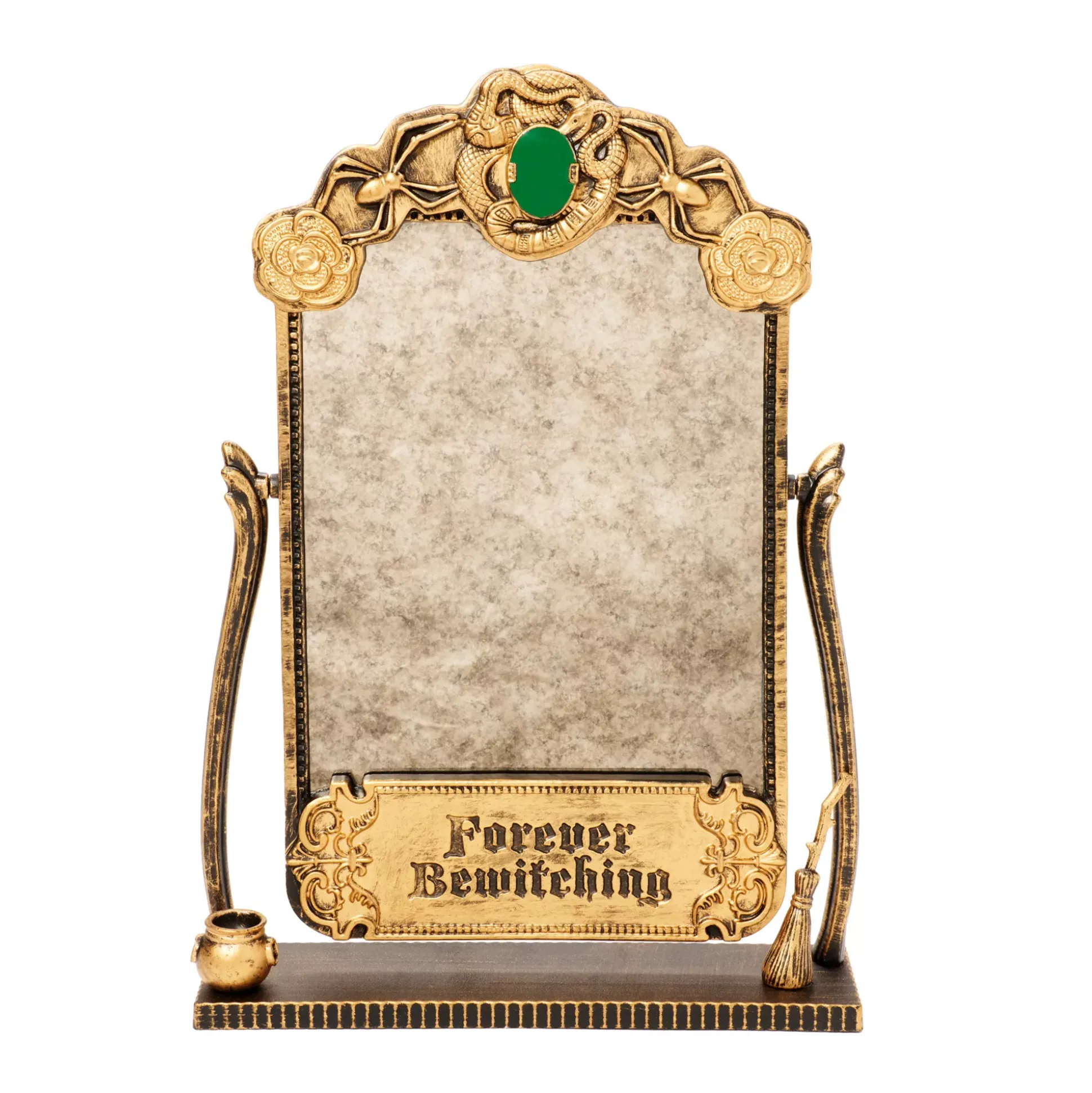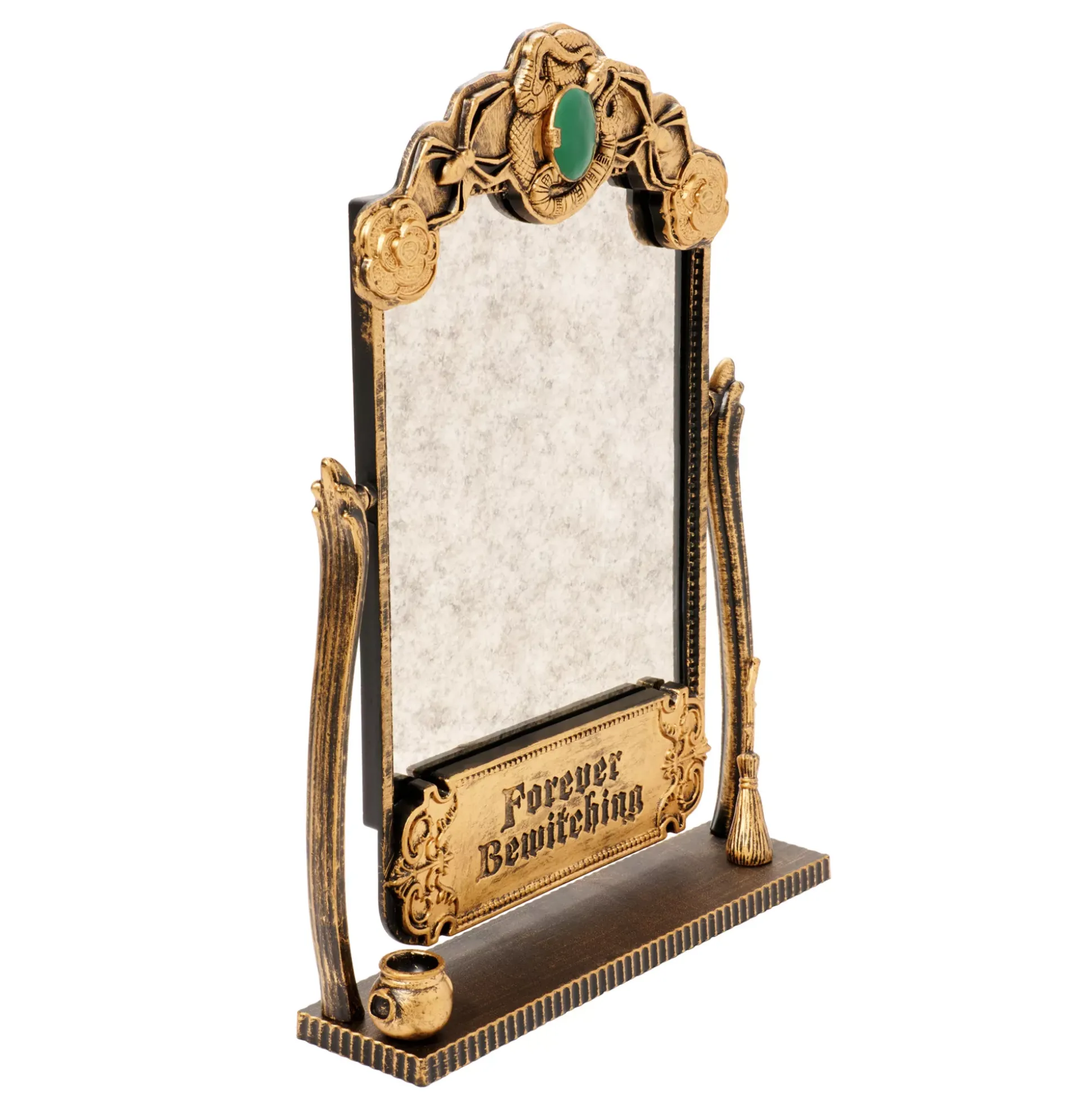 Stay young and beautiful forever with this officially licensed Forever Bewitching Tabletop Mirror from Hocus Pocus! This gorgeous gold tone mini mirror features pretty accents from the movie and has an ancient touch!