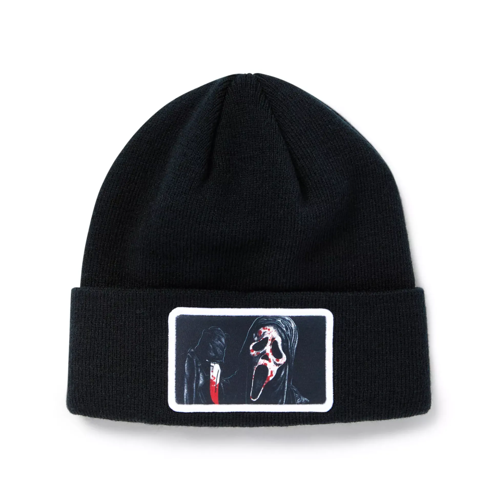 Slash your way into a stylin’ fit with this Ghost Face beanie! This officially licensed beanie features Ghost Face clutching a bloody knife and is sure to send everyone screaming. This frightening fit is the perfect choice for any horror fan!