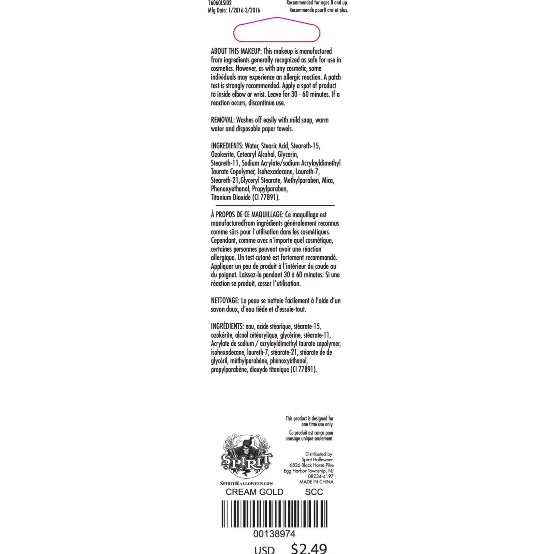 This 1-ounce tube of professional rich color cream is ideal for a thousand and one costumes. This basic golden yellow makeup is a must-have whether going as Tweety Bird, Goldmember or a classic Clown! This product’s range of applications is limitless.