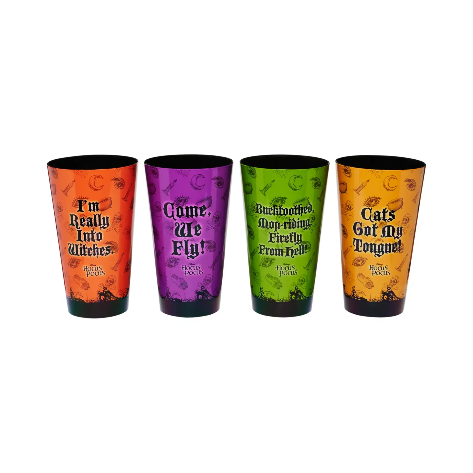 Raise a toast to the Sanderson sisters and put a spell on your guests with this officially licensed 4-pack of Hocus Pocus cups. Sip in enchanting style and let the magic flow.