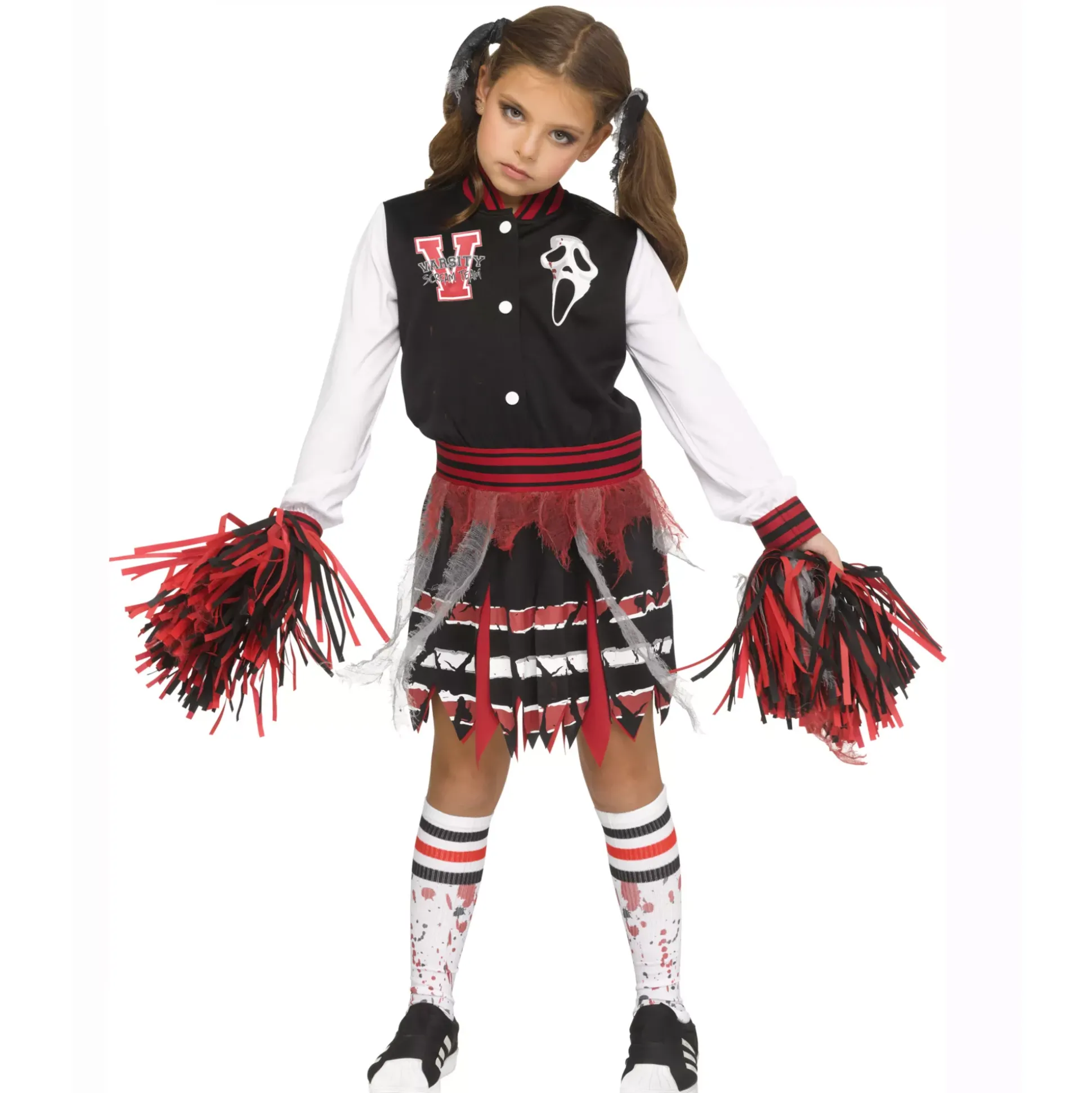 Big horror fan? Cheer for your favorite slasher all Halloween long when you dress up in this officially licensed Ghost Face Varsity Cheer Costume. This outfit includes a dress that features a pair of pom poms and a pair of bloody socks.