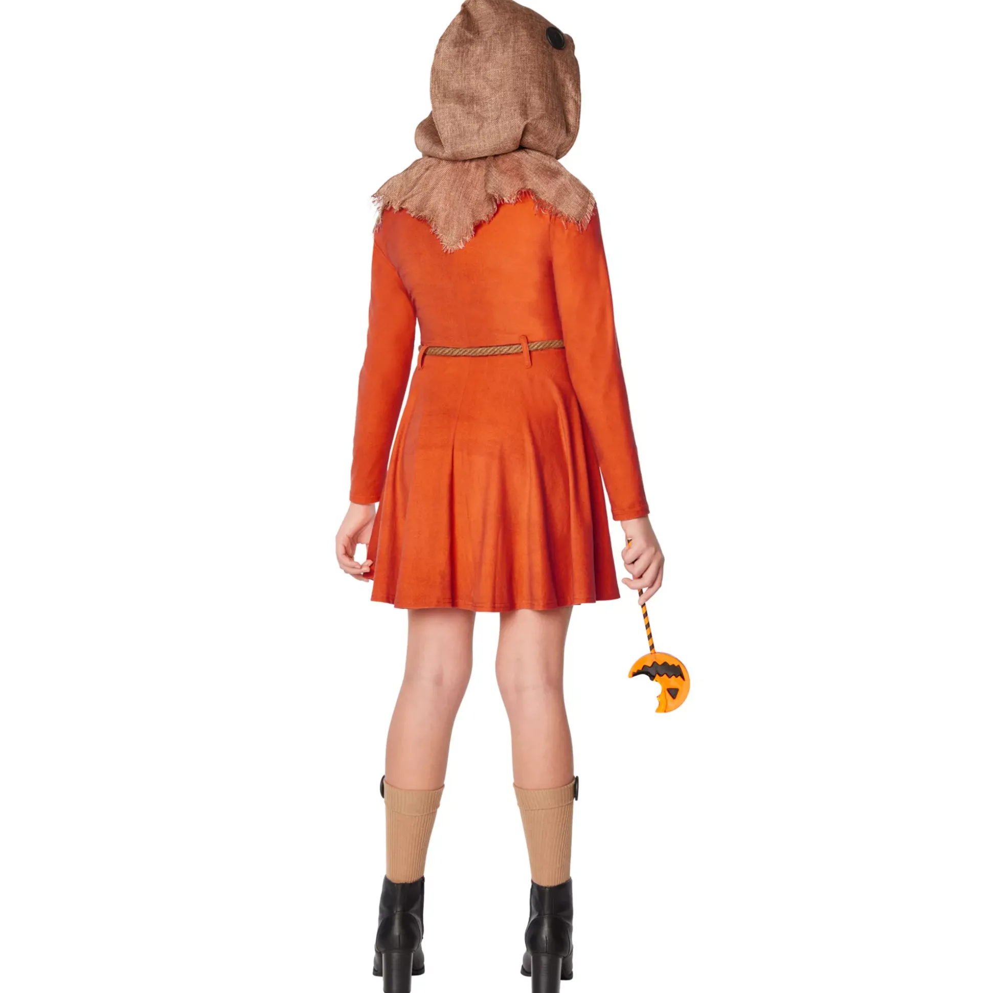 You’ll be ready to enforce the rules of Halloween in this officially licensed Trick ‘r Treat Sam costume! With its deep orange and yellow accents, a removable rope belt, and an attached burlap hood, this hooded dress has all of Sam’s signature features. Knee-high socks with dainty bows put a stylish spin on a spooky character!