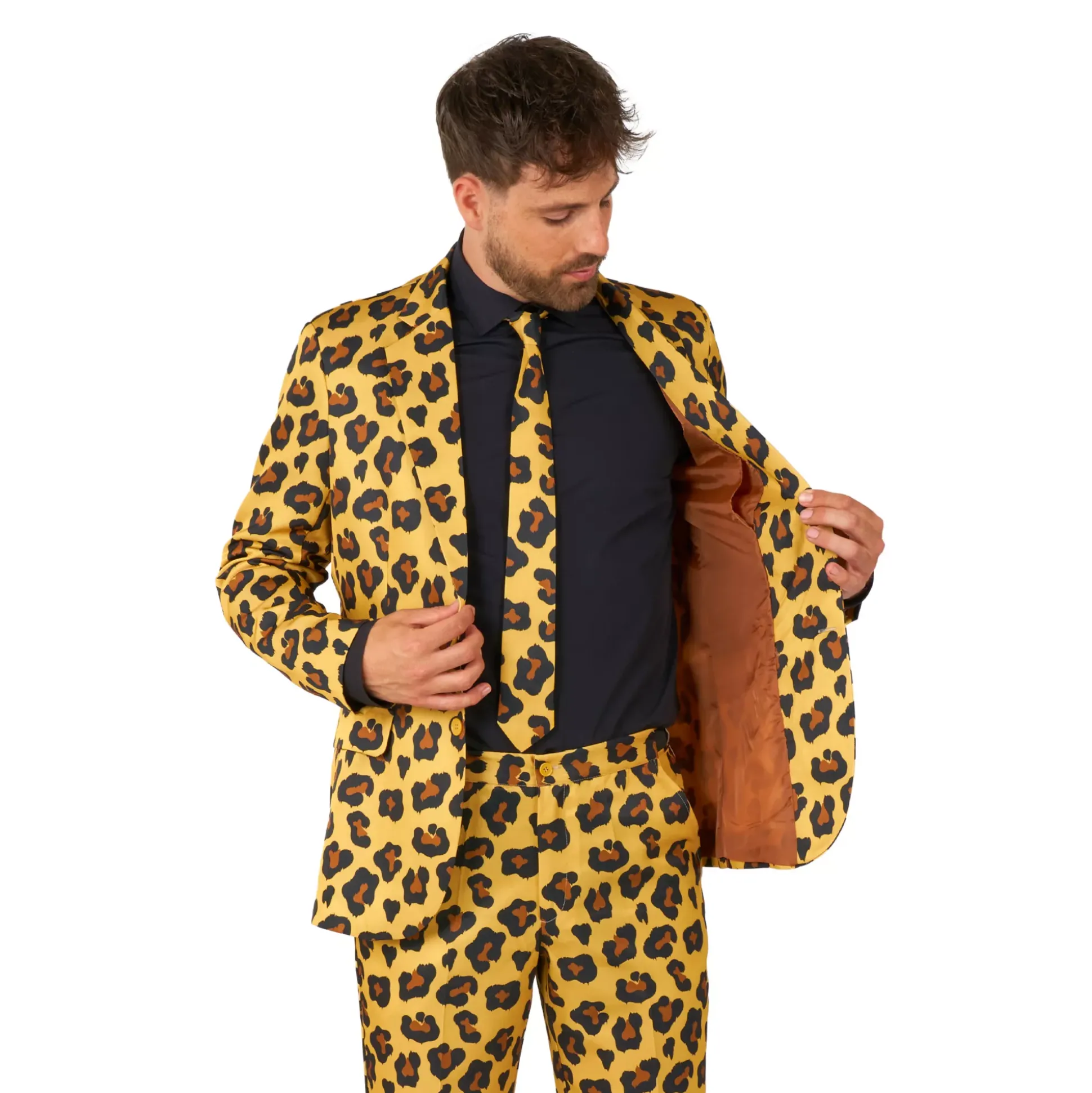 Searching for the purrfect Halloween costume? Look no further than this Leopard Print Suit. Featuring a suit jacket, matching pants, and a tie, this outfit is exactly what you need this Halloween.