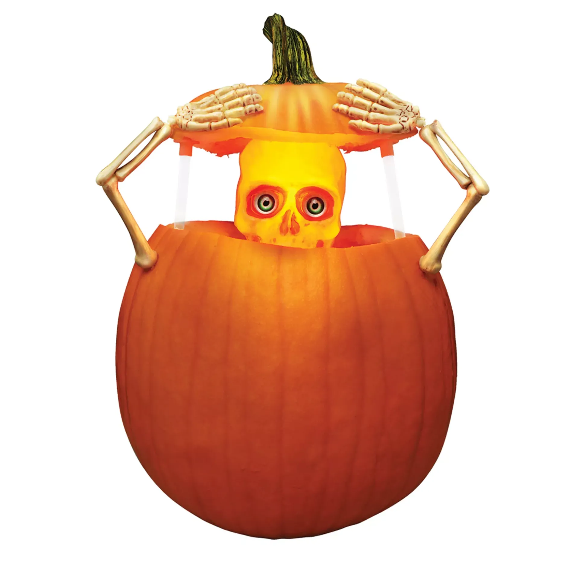 Take your jack o’lantern game to the next level this Halloween when you incorporate this Light-Up Pumpkin Peeper Kit! This strikingly spooky skeletal decoration is sure to give your visitors a fright.