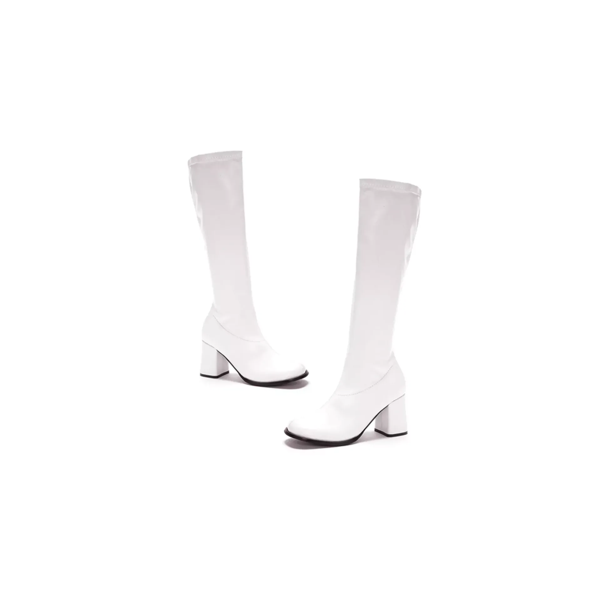 Step up the sexiness of your Halloween costume with a White Go-Go Boot. Use this versatile accessory to complete your disco or mod costume. With their 3-inch block heels, these sexy boots will ensure that your costume towers over the competition!